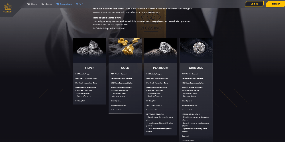 Overall, 21 Casino provides gamers searching for a large range of games, alluring bonuses, and top-notch customer support with a fantastic online gaming experience. The casino is a dependable option for players who appreciate these characteristics in an online casino due to its emphasis on safe gaming and open terms and conditions.21 Casino is a chic and cutting-edge online casino that provides a huge selection of games from leading developers like NetEnt, Microgaming, and Play'n GO. Since its 2015 debut, the casino has swiftly grown in popularity among players because to its easy-to-use interface, top-notch customer support, and many bonuses and promotions. The UK Gambling Commission and the Malta Gaming Authority have granted the casino licences, guaranteeing that gamers will have a secure and fair gaming experience. 21 Casino is a preferred choice for gamers worldwide due to its amazing game selection, a large range of payment methods, and quick payouts. 21 Casino offers a variety of games to fit your tastes, whether you prefer slots, table games, or live dealer games.