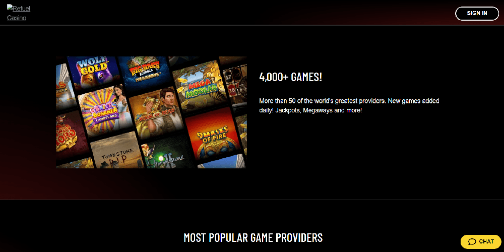 The variety of games at Refuel Casino is one of its features. Over 4,000 games, including slots, table games, live casino games, and more, are available at the casino. Leading game producers like NetEnt, Microgaming, Play'n GO, and Pragmatic Play provide these games.