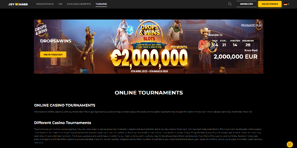 Softwareanbieter Das JoyWinner Casino ist Partnerschaften mit einer Reihe der angesehensten Softwareunternehmen der Branche eingegangen, darunter NetEnt, Microgaming, Play'n GO und Evolution Gaming. Dies garantiert, dass Spieler Zugriff auf Spiele von höchster Qualität haben, einschließlich solcher mit hervorragender Grafik, Animationen und Soundeffekten.