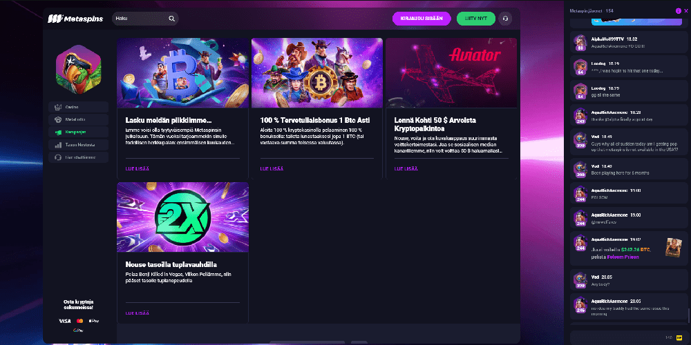 Vastaus on kyllä, Metaspins Casinon uudet pelaajat ovat oikeutettuja erittäin suureen tervetuliaisbonukseen. Tarjous sisältää usein pelibonuksen pelaajan alkuperäiseen talletukseen sekä ilmaispyöräytykset useisiin muihin kolikkopeleihin.